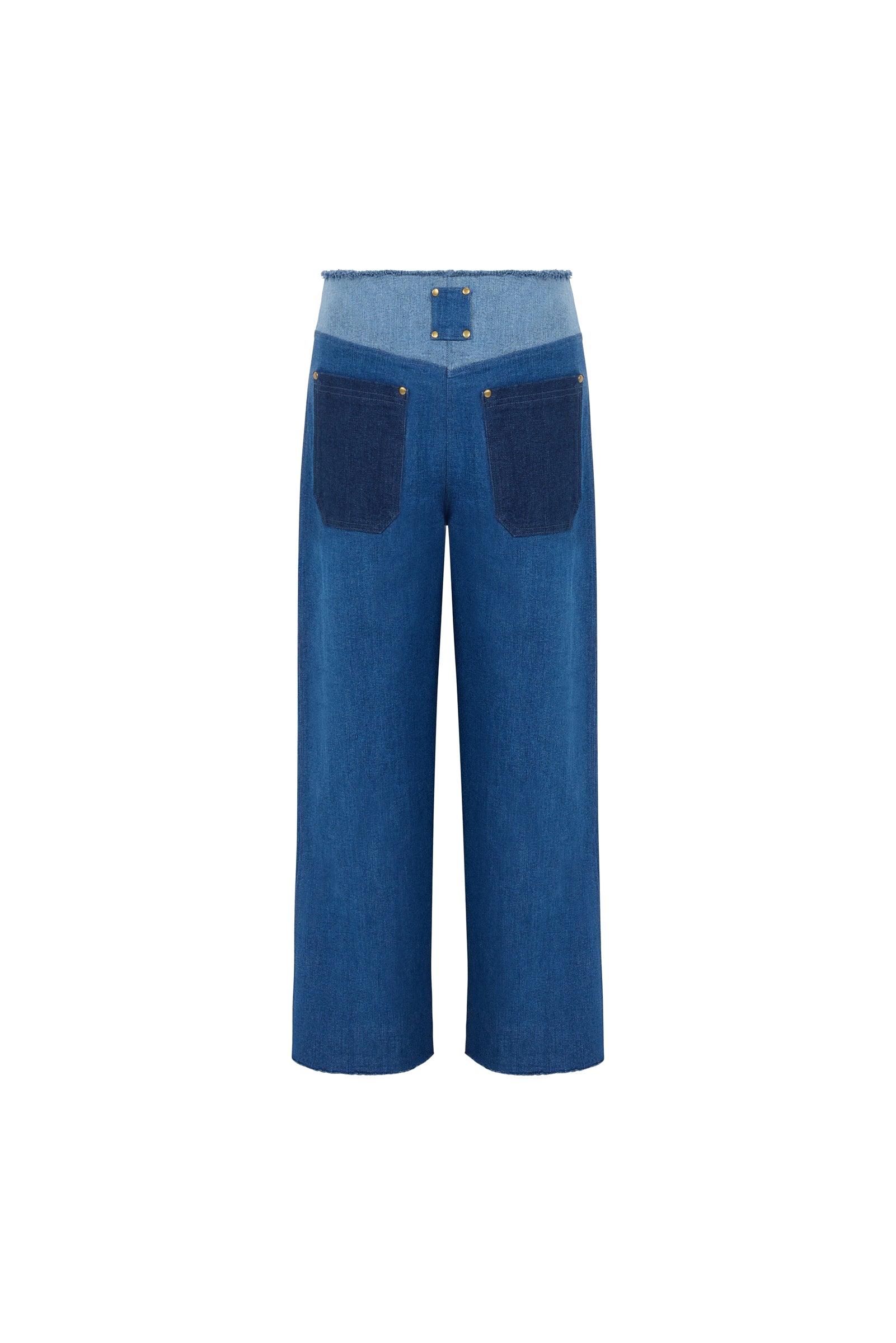 ARDEN - Stud Detailed Pants with Three Different Shades of Denim
